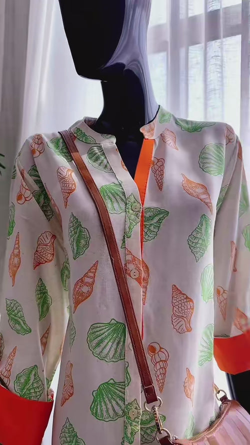 abstract maxi dress with neon collar & cuffs